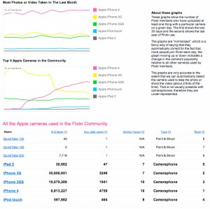 That figure has risen to 30,652 uploaded images, as of today (June 16, 2011) with more than double the active daily users, now 47, but the iPad 2 still registers as the least used of all the Apple devices with a digital still camera attached.